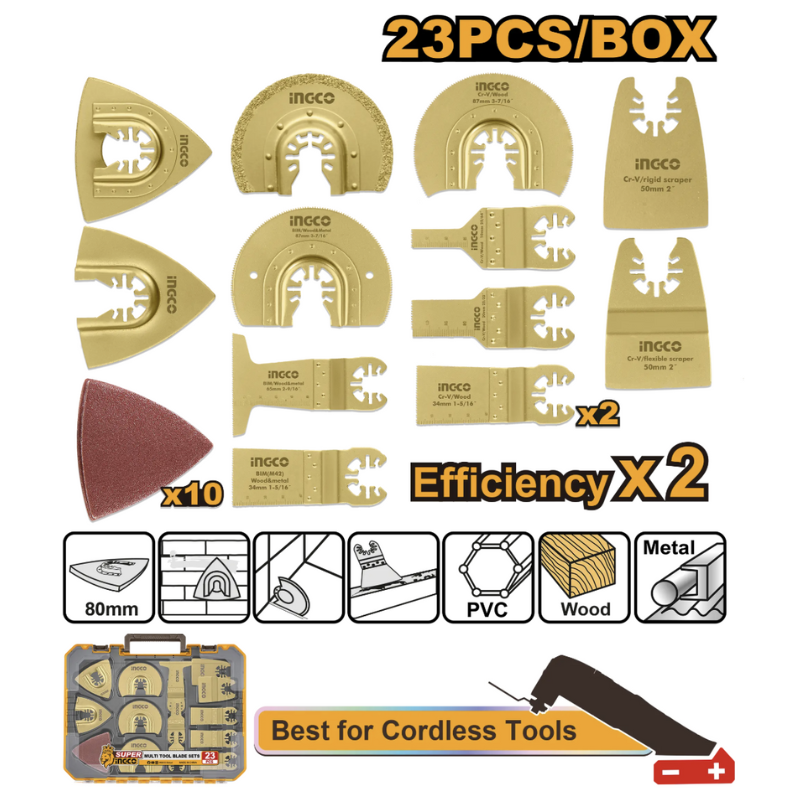 Transformă-ți multitool-ul într-o mașinărie de precizie! Adaugă acum în coș setul de 23 de accesorii și finalizează orice renovare cu rezultate profesionale.
