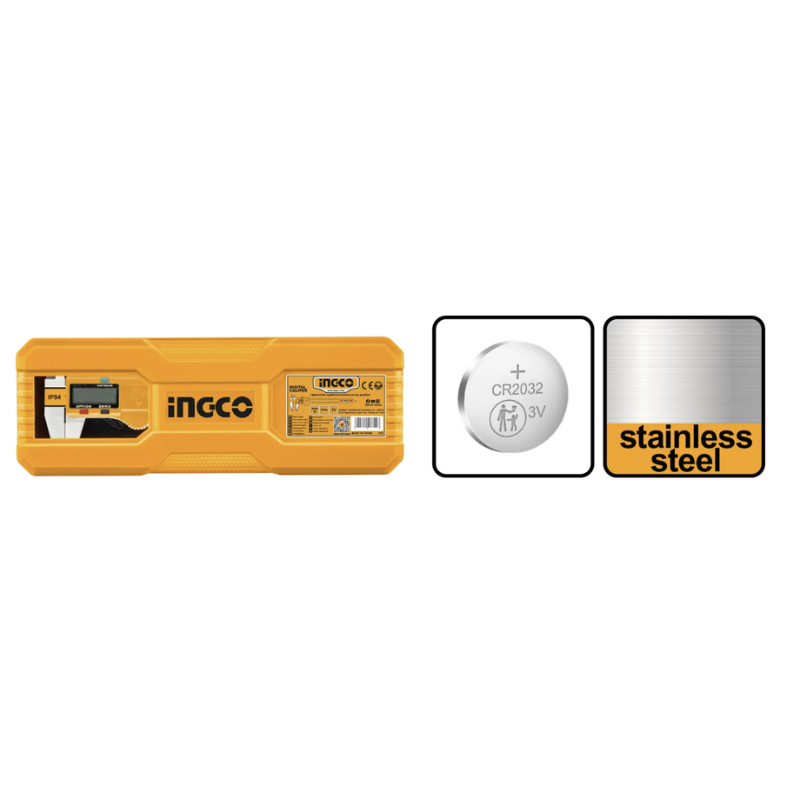 INGCO Subler digital 150 mm, precizie 0.01 mm, afisaj LCD clar, conversie mm inch rapida, protectie IP54, otel inoxidabil rezistent