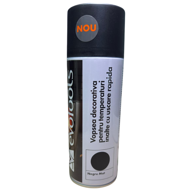 Evotools Spray vopsea temperaturi inalte, 400ml, negru mat, pentru metal gratar tevi sobe