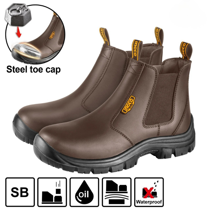 Cizme de protecție INGCO – Piele, Bombeu Metalic, Talpă Antiderapantă, Tip Chelsea