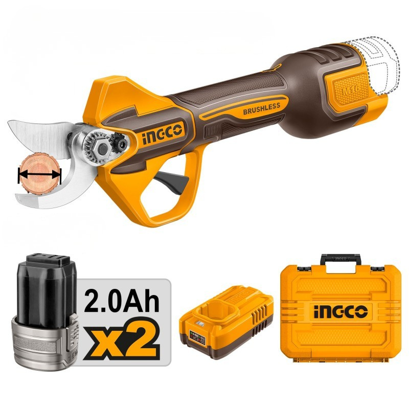 Foarfecă Electrică de Tăiat Vii/Pomi INGCO, 16V, Motor Fără Perii, Tăiere Max. 25 mm, Set 2 Acumulatori 2.0Ah Această foarfecă electrică cu acumulator, parte din gama INGCO M16 (16V), este esențială pentru lucrările de întreținere a grădinii, a viței-de-vie și a pomilor fructiferi. Echipată cu un Motor Fără Perii (Brushless), oferă o putere de tăiere puternică, precisă și rapidă, putând secționa crengi de până la 25 mm în diametru. Setul este complet, incluzând 2 acumulatori Li-Ion de 2.0Ah și o geantă de transport robustă, asigurând o autonomie extinsă și mobilitate maximă.