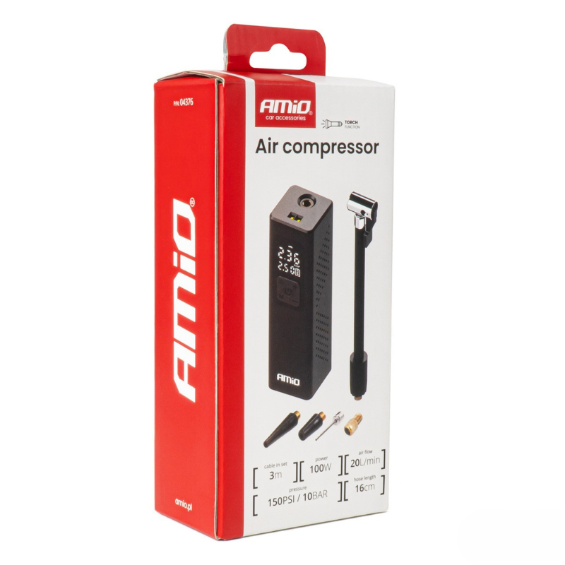 Compresor auto portabil, 12V, 100W, 10 bar, manometru digital