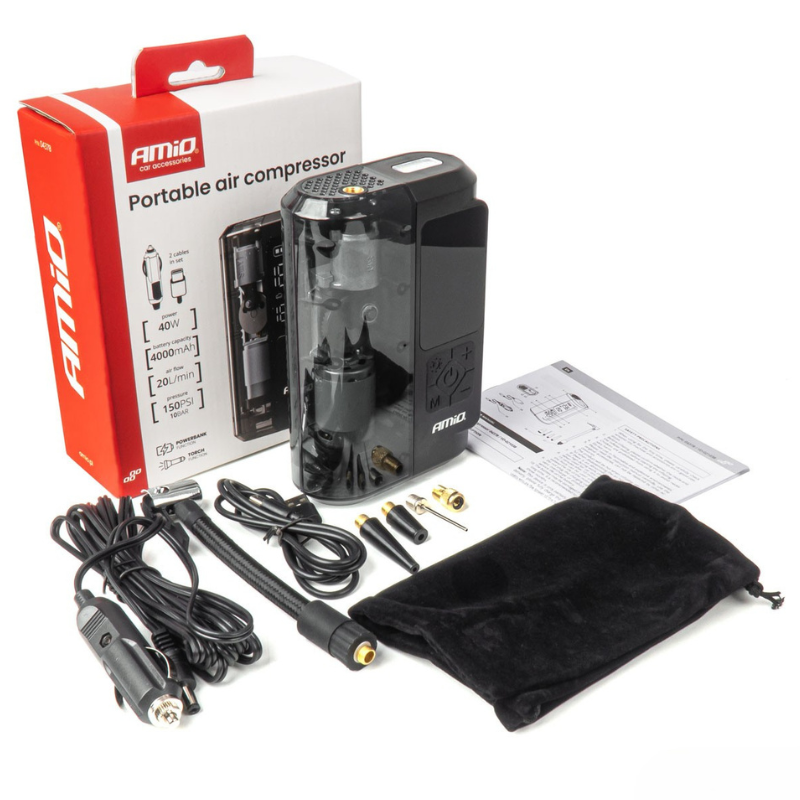 Compresor auto portabil, wireless, cu powerbank, 10 bar