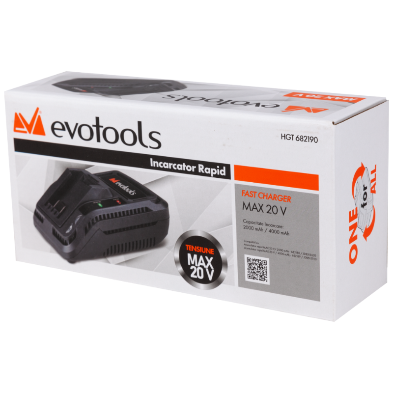 Evotools Incarcator rapid, 20V, pentru acumulatori 2/4Ah, 22x11x7 cm