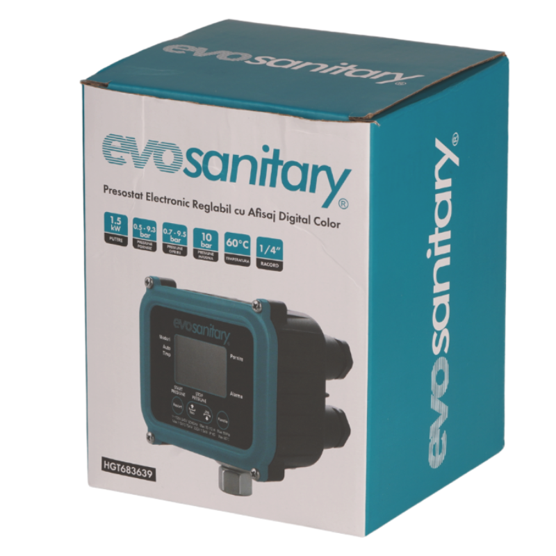 • Precizie și Control Vizual: Afișajul digital color elimină erorile de citire și îți permite să vezi starea sistemului dintr-o privire, oferind un reglaj mult mai fin decât presostatele mecanice clasice.