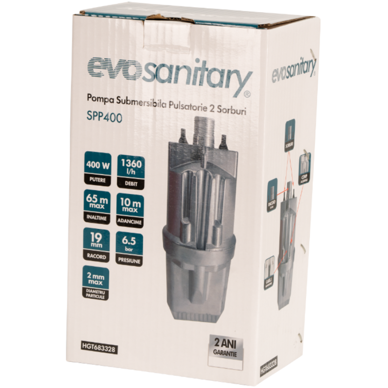 Pompa Submersibilă Pulsatorie cu 2 Sorburi SPP Pompa Submersibilă Pulsatorie cu 2 Sorburi SPP este concepută pentru alimentarea cu apă curată din puțuri sau fântâni de mică și medie adâncime. Datorită celor doi sorburi de admisie, asigură o absorbție uniformă, reducând uzura componentelor interne și menținând o presiune constantă în instalație. Este ideală pentru uz casnic, irigații sau alte aplicații domestice.