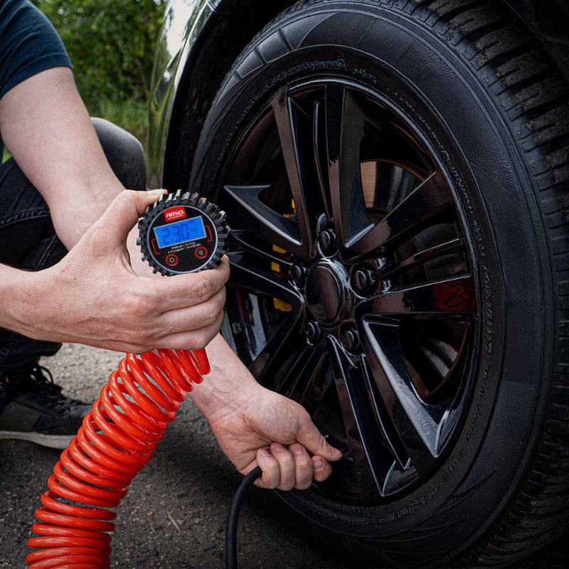 Manometru Digital AMiO pentru Presiune Anvelope, 0-17 Bar (0-250 PSI), Carcasă de Protecție din Cauciuc 04463 Descriere Scurtă Manometru digital de înaltă precizie, conceput pentru verificarea rapidă și exactă a presiunii în anvelopele de autoturisme, vehicule comerciale (dubă, camion) și utilaje. Datorită afișajului digital, elimină erorile de citire specifice manometrelor analogice. Carcasa robustă din cauciuc protejează eficient dispozitivul împotriva deteriorărilor mecanice, fiind ideal pentru utilizarea în service-uri și acasă.