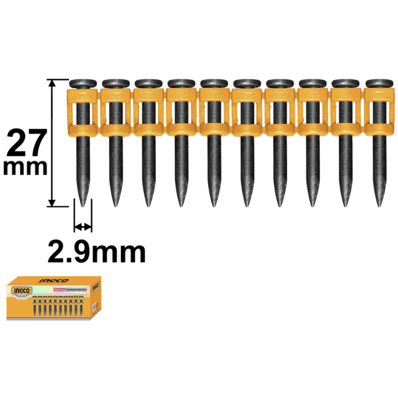 Cuie Beton 27mm 2.9mm, 1000 bucăți, pentru Pistol Electric Cuiele de beton sunt concepute pentru fixări rapide și sigure în beton și materiale dure, fiind ideale pentru lucrări profesionale de construcții și montaj. Realizate din oțel rezistent, oferă durabilitate ridicată și performanță constantă în utilizare intensivă.