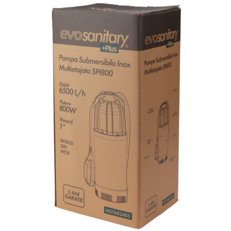 Pompa submersibilă multietajată inox 800W, 6500 l/h, 30 m, cu plutitor automat Pompa submersibilă multietajată este destinată utilizării pentru irigarea grădinilor de mici dimensiuni, alimentarea cu apă curată în instalații temporare și umplerea sau golirea rezervoarelor și piscinelor mici. Este prevăzută cu plutitor electric pentru pornire și oprire automată în funcție de nivelul apei, iar construcția din ABS și inox contribuie la reducerea riscului de coroziune. Designul compact și mânerul integrat facilitează transportul și utilizarea.