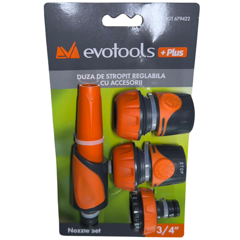 Set duză de stropit reglabilă cu accesorii 3/4”, conectori furtun și adaptor robinet Setul de duză de stropit reglabilă este ideal pentru irigare, curățare și utilizare în grădină sau gospodărie, oferind control ușor și adaptabilitate în funcție de necesități. Construit din ABS rezistent și cauciuc termoplastic, asigură o prindere sigură chiar și în condiții de umezeală și utilizare confortabilă.