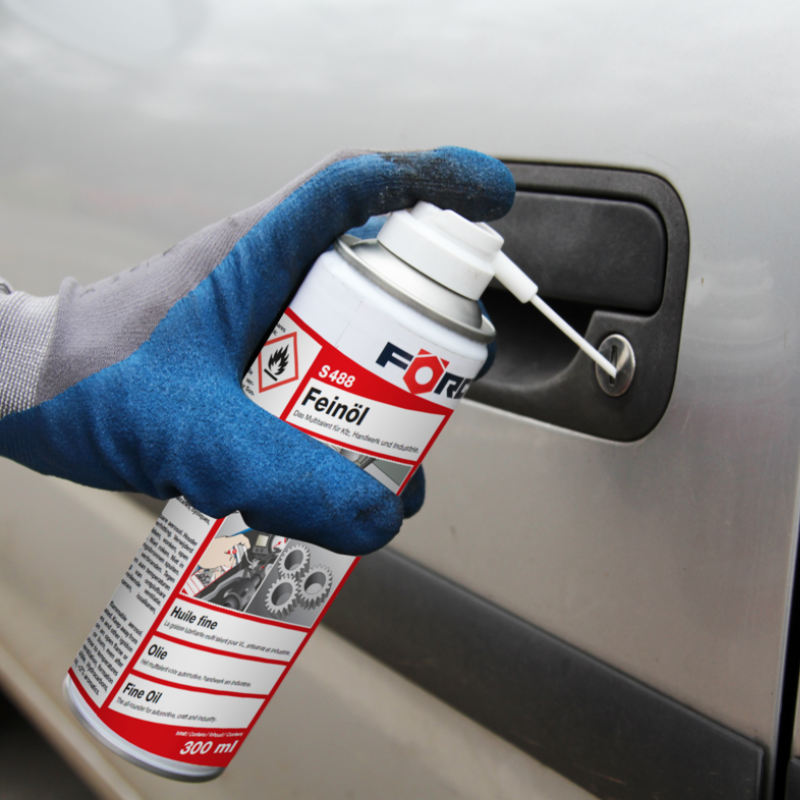 Ulei Fin Lubrifiant Spray FORCH S488, 300ml, cu Nitrură de Bor, Rezistență la Temperaturi -20°C / +200°C Lubrifiant multifuncțional FORCH S488 Feinöl (Fine Oil) de înaltă performanță, pe bază de ulei mineral și nitrură de bor, ideal pentru o gamă largă de aplicații în domeniul auto, ateliere și industrie. Oferă o capacitate ridicată de penetrare, ajungând în locuri greu accesibile, și asigură o lubrifiere de lungă durată și protecție anticoroziune, fără a reține murdăria.